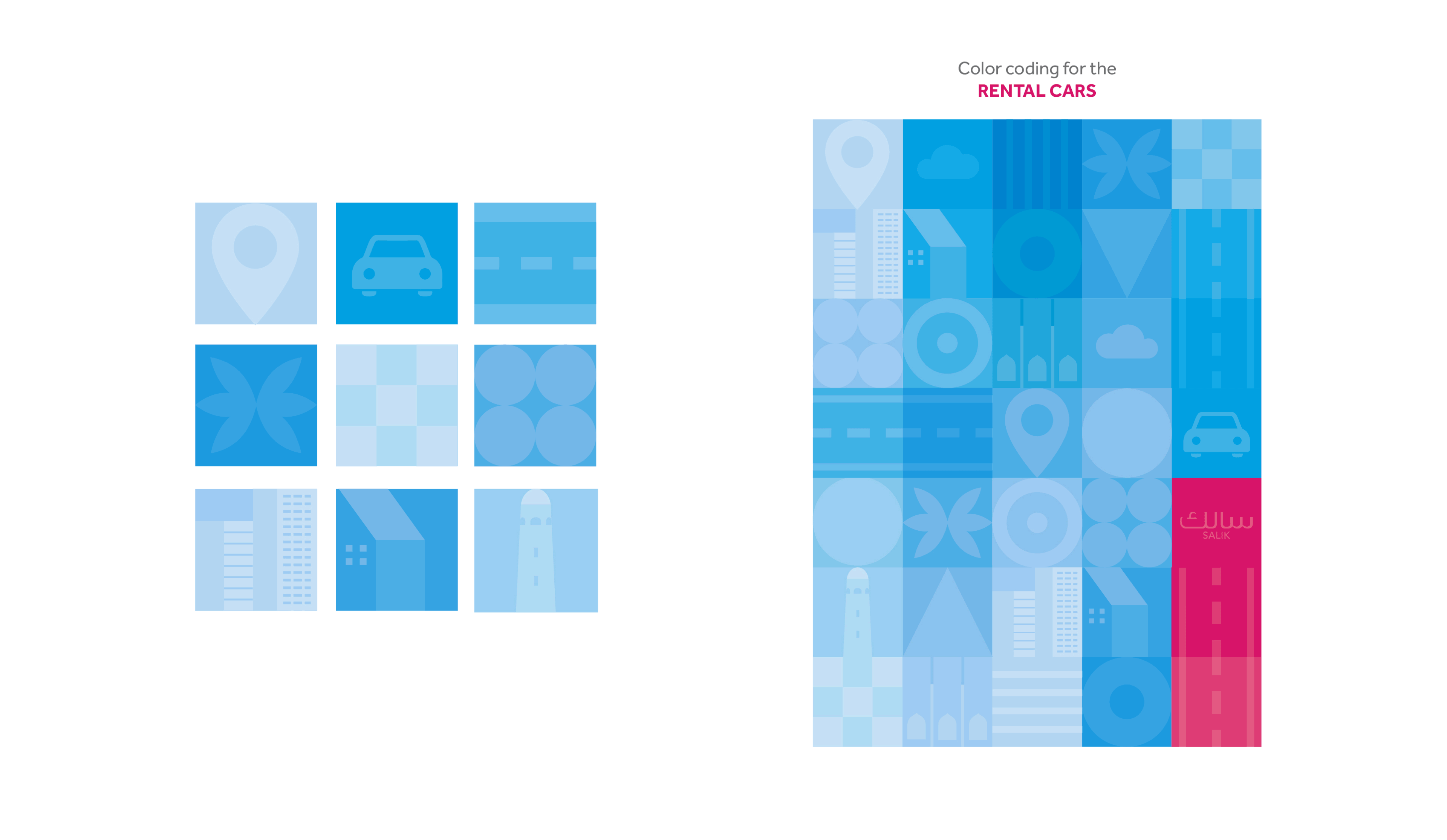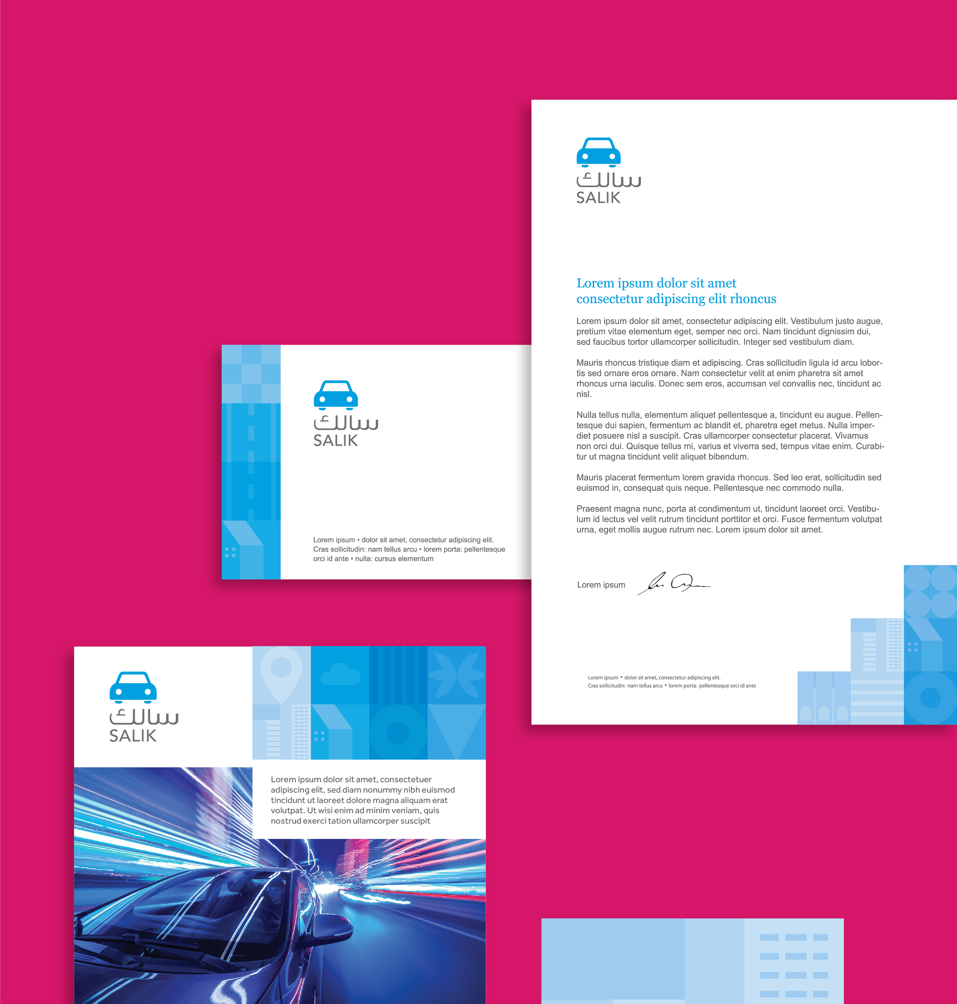 The new vibrant identity of SALIK includes an animated car video that showcases the variety of car types SALIK have and a dynamic identity of patterns that can adapt and change and be added on as the brand expands its services as well.