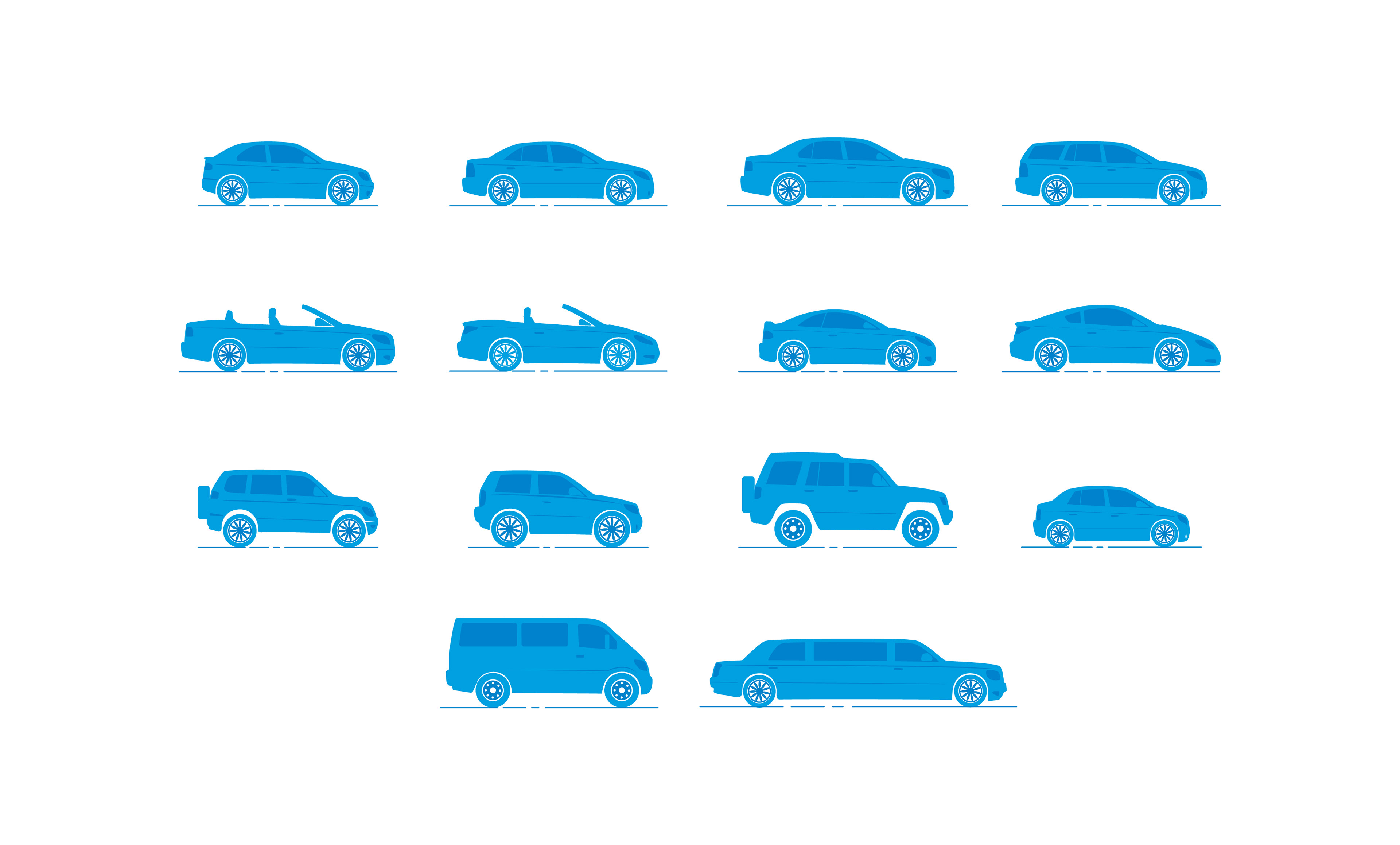 A variety of car types provided by SALIK are illustrated for the intent of using them in an animation video that can be used online or on animated banners.