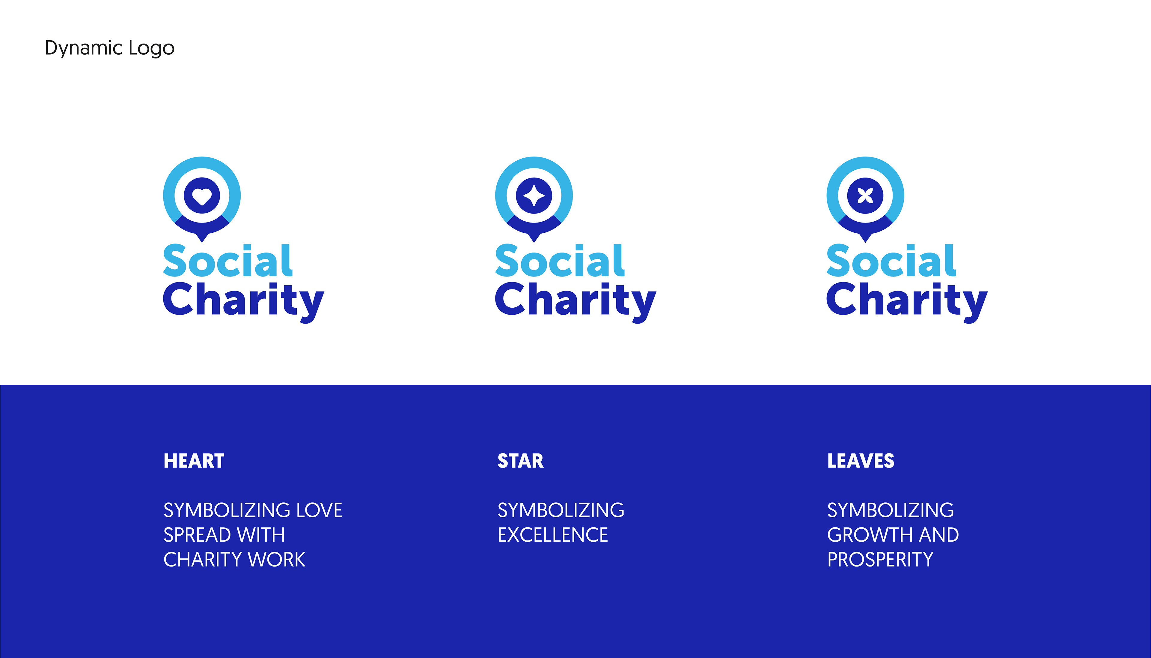 As a dynamic logo concept, the logo icon changes other than the main logo design to these 3 options reflecting what charity provides to their communities and Social Charity being the carrier and facilitator for these charities to deliver these concepts