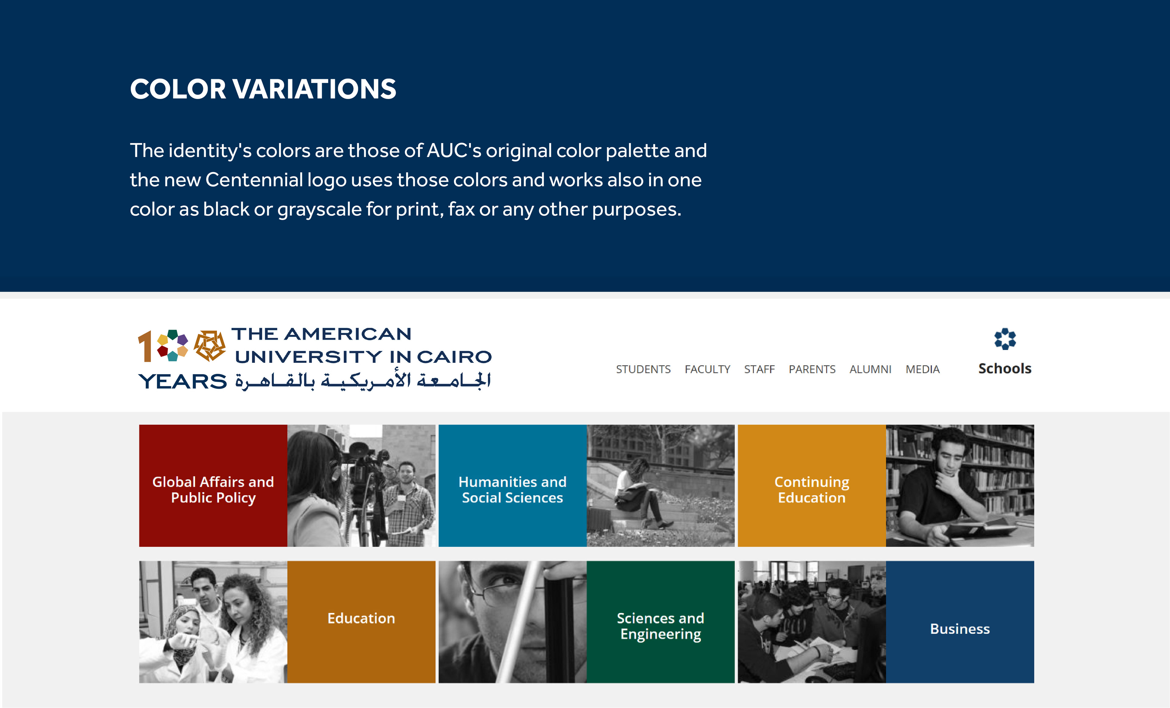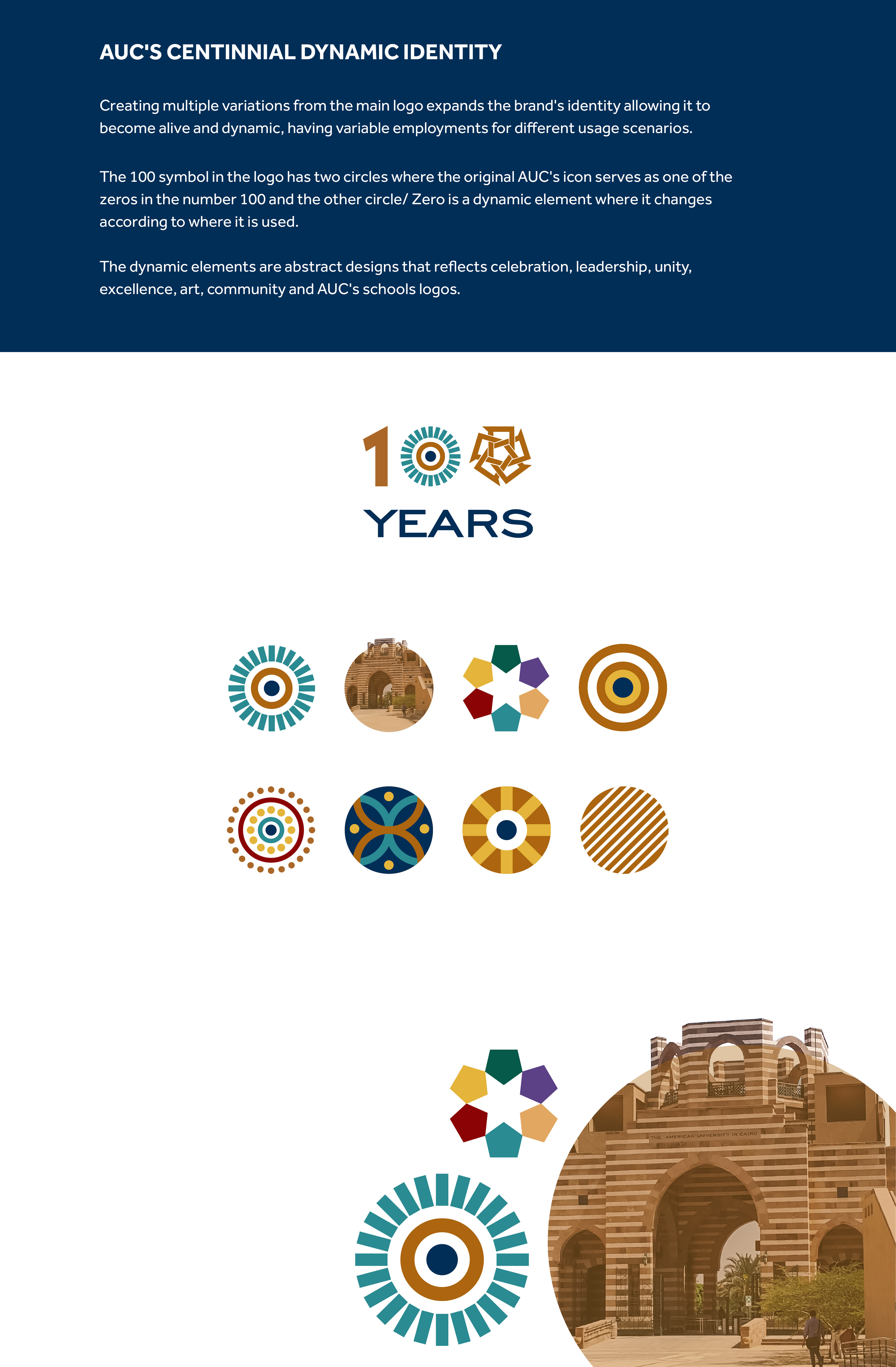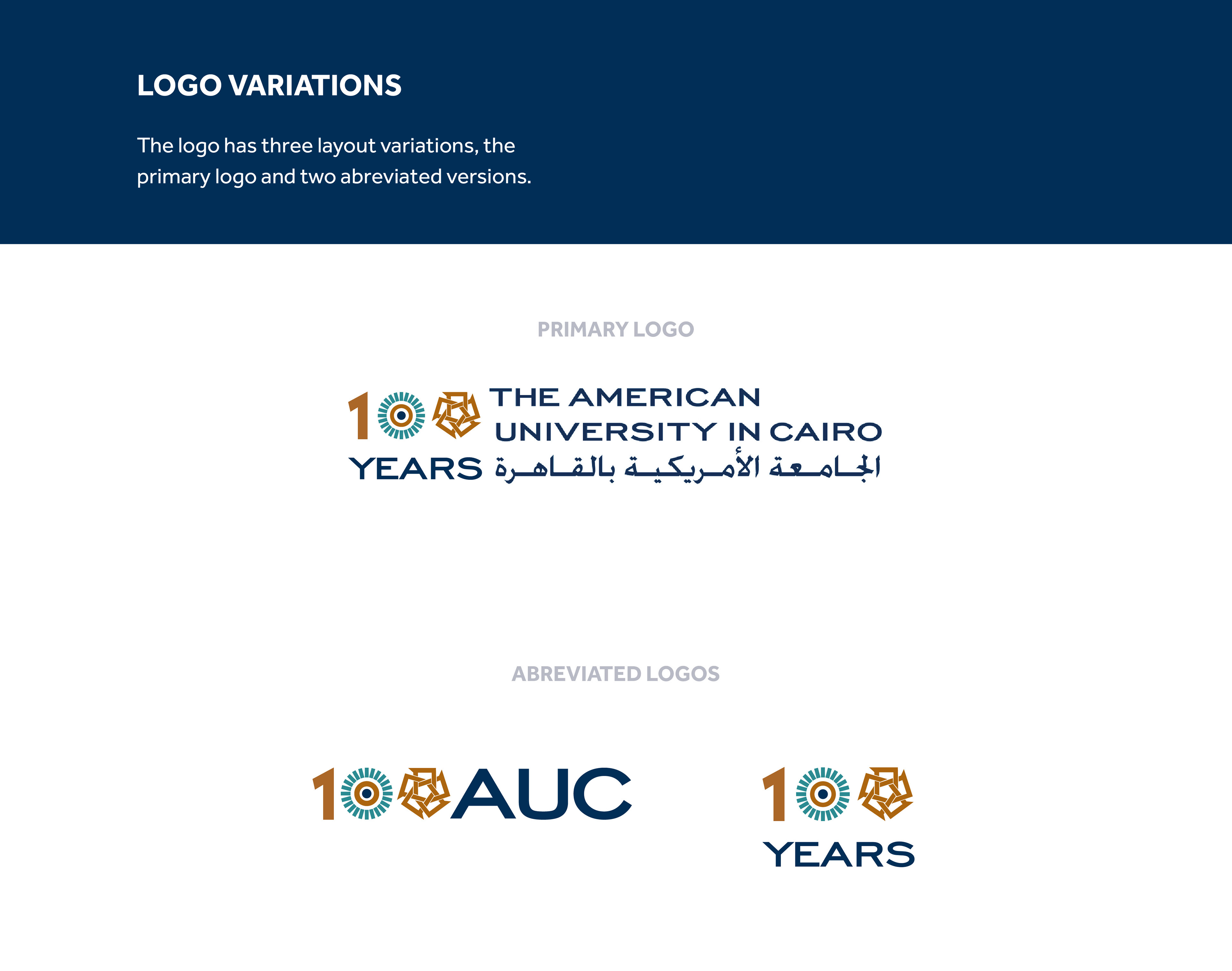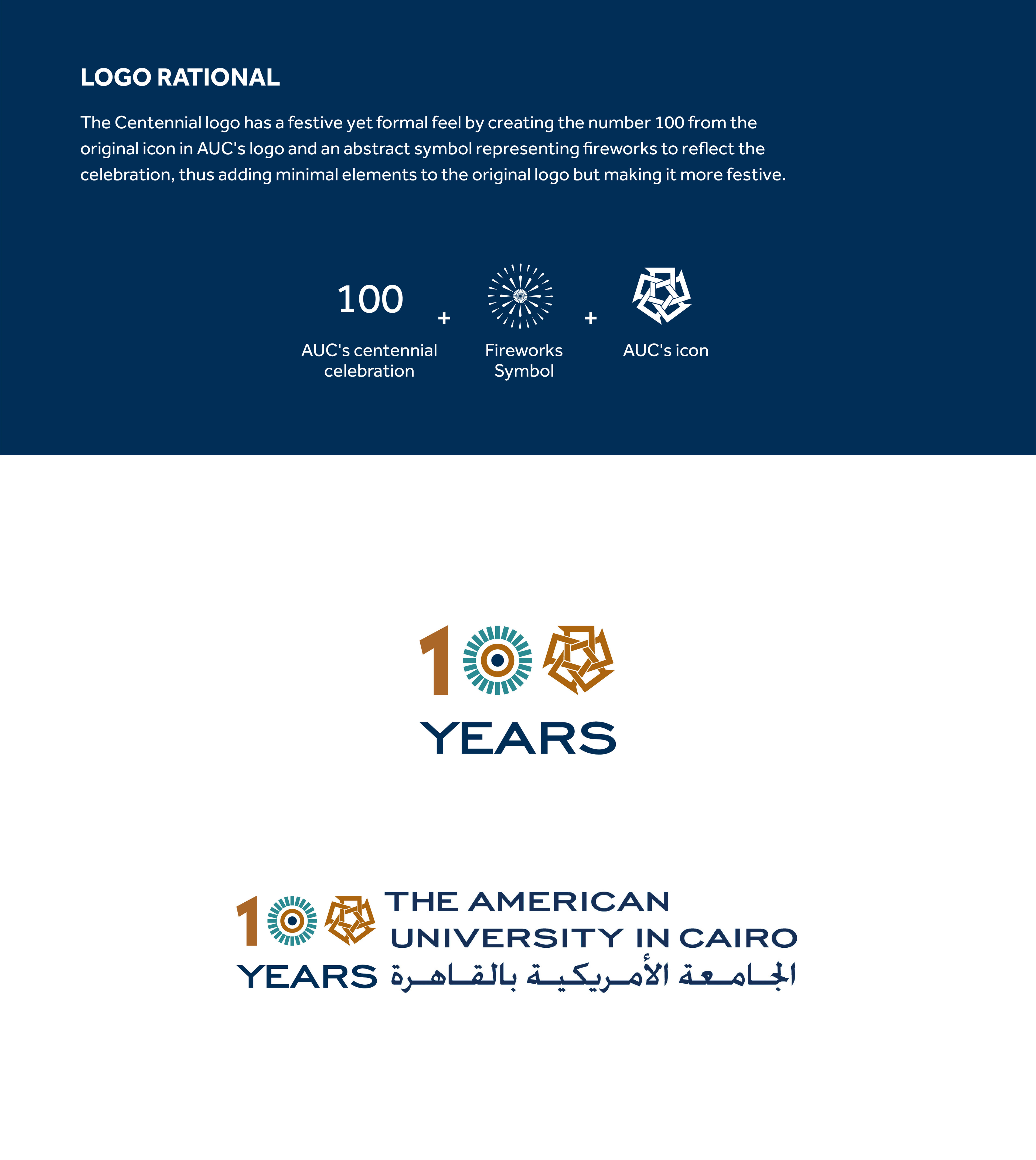 In celebration of AUC's 100 years, The American University in Cairo needed their logo to represent the AUC's centennial celebration while keeping the original logo intact.